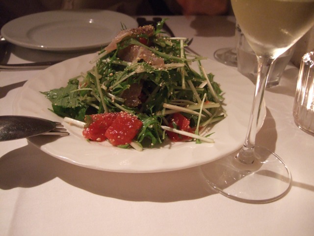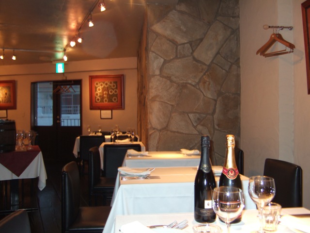 ここはオーストラリア産のワインとそれに適ったフランス料理・イタリア料理そして変わったところではオーストラリアのカンガルーやワニ肉が売りで、ボトルは常時3、400種類の貯蔵を誇っているという。料理はアラカルトでオーダーしてもよいし、4、5人でいくときは、料理5千円のコースを頼んでおけば、Amuse(お通し)・Appeetizers(前菜)・Pasta(パスタ)・Fish(魚介料理)・Meat(肉料理)・Dessert・Coffeeと、結構、お腹一杯になる。