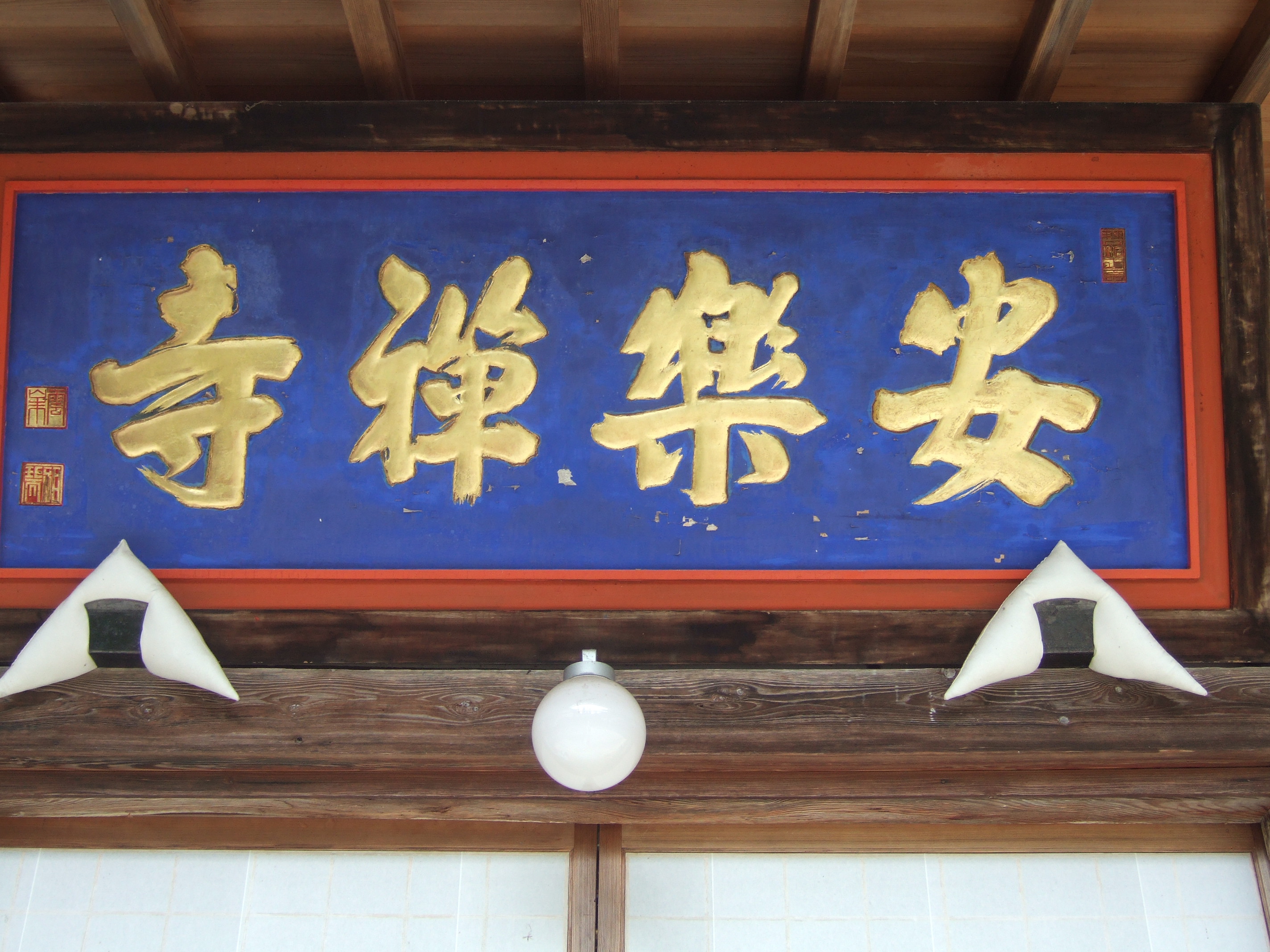 そして、安楽寺の本堂の扁額を見て、「あれっ」と思われた方も多いのではなかろうか。わたしは、その禅寺に似つかわしくない極彩色の色遣いに、即座に宇治の黄檗山萬福寺を想い起したのである。信州の盆地に何故か中華の色合いの濃さに触れたようで、奇異な感じに捉われたのである。