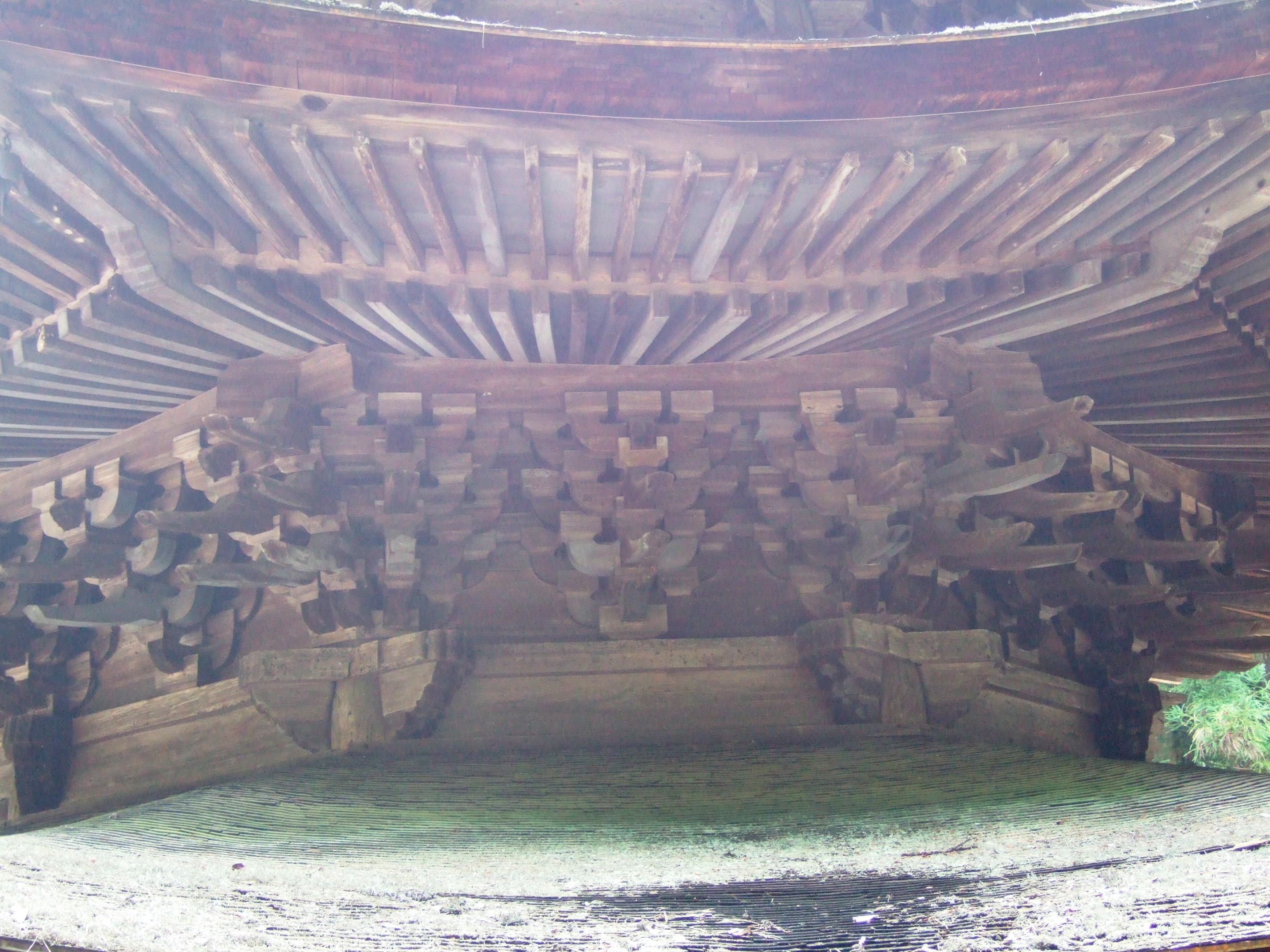そういう想いでこの三重塔を仰ぎ見ると、明治時代におけるレンガ造りの大学の講堂建築の威容がある種、権威の象徴として若者たちの目に映っていたように、この塩田平が勉学に励む若者たちのエネルギーに溢れた学生の街であった頃、若い学僧たちは、塩田平の西方のちょっと小高い山腹に聳え立つこのハイカラな塔を望見しては、先進文化への強烈な憧れを覚えていたのかも知れないと思った。
