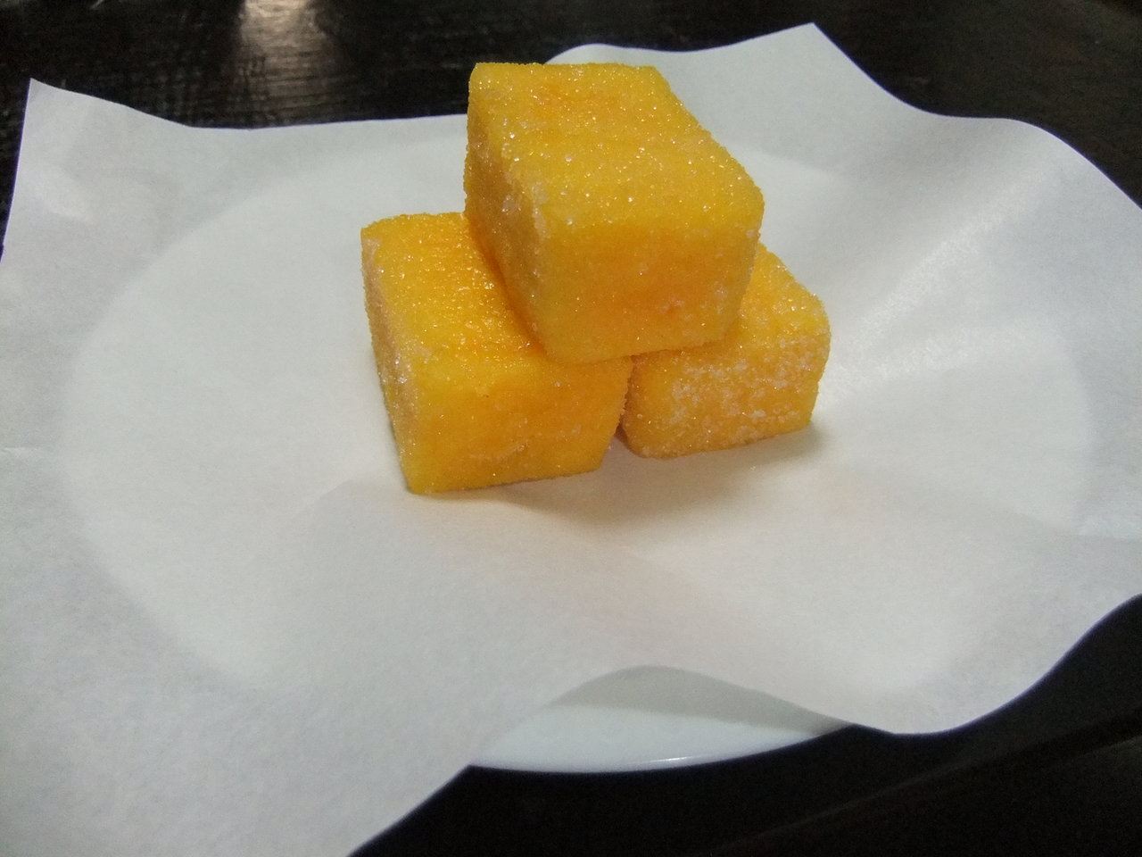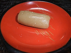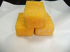 「蔦屋総本家」は、150年前に制作されたスイーツの元祖レシピ本と云ってもよい「百菓乃図元本」(松浦家・第35代当主松浦熙(ヒロム)の命で作成)の後書きにもその名が認められるように、平戸藩松浦家の御用菓子の勤めを担ってきた老舗であるが、その歴史をたどると、創業は文亀二年(1502)と五百余年もの歴史を有する由緒ある菓子舗である。 そして現在も、肥前平戸藩の4代藩主となる松浦鎮信(松浦家29代)が興した武家茶道の一派である「鎮信(チンシン)流」の御茶請をこの蔦屋が提供しているという(初代平戸藩主も松浦鎮信というが、”鎮信流”を興したのは4代目の殿様の方である)。 当店の一押し人気商品の「カスドース」(日持ち14日間)は、ポルトガル船の来航の際に、カステラと一緒に伝わった南蛮菓子のひとつである。戦前までは松浦家の「お留め菓子」として藩侯の催す茶会の御茶請や献上品としてのみ限定的に製造されていた、いわば門外不出のスイーツであり、この「蔦屋」を代表する銘菓である。 「カスドース」は「一口大に切り分けたカステラを溶いた卵黄にくぐらせ、熱した糖蜜に浮かべ、最後に砂糖をまぶす」と当店HPに製法が記されている通り、そのしっとりとした濃厚な甘さがスイ−ツ・オタクには堪らない。初めて口にした時、正直、その贅沢な甘さに驚いたものである。砂糖や卵がとんでもないほどの貴重品であった五百年前に、この平戸にこうしたスイーツがあったこと自体が奇跡と云ってよい。 人間の「食」に対する欲望は今も昔も変わらぬものなのだと思った。そして、五百年前には殿様しか食べられなかったスイーツが、こうして庶民のわたしの口にも入る、今の時代の幸せに改めて感謝した次第である。 「百菓乃図」に掲載された菓子で、「牛蒡餅」と「烏羽玉(うばだま)」がある。当日は「カスドース」のほかにその二つを求めようとしたが、松浦史料館監修の下で再現された「烏羽玉」は、足が早い(日持ち3日間)ため午前中早くに売り切れとなったとかで、購入できなくて残念であった。「黒ゴマ入り練り餡を柔らかい求肥で包み讃岐三盆糖をまぶした(HP)」烏羽玉、食べてみたかった。 「牛蒡餅」(日持ち7日間)は「中国からの伝来と伝えられ、慶弔時の菓子として用いられその姿が牛蒡に似ていたことからその名がついた」と当店のHPで説明されている。モチッとした食感は・・・、うん、まさに餅だ。カスドースとは異なり、至極、あっさりとした淡白な味の菓子である。 やはり、絶品は「カスドース」である。こうした菓子はこれまで口にした記憶がない。オンラインショップで購入できることになっているが、TVで紹介されたとかでここ数カ月は注文殺到のため常に「SOLD OUT」と表示されており、しばらく模様を観てから注文にこぎつけたいと考えている。 しかし、五百年の歴史を有す老舗で「sold out」とは、やはり由緒ある南蛮菓子、スイーツの店舗の為せる洒落た技であると、妙に感心している。