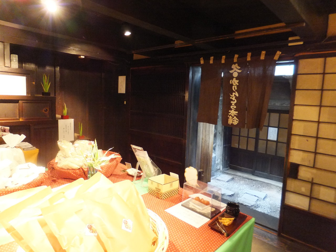 店内に飾られた額や置物を見ると、どこか由緒あり気な和菓子屋である。店の奥の窓越しには小さな中庭と漆喰塗の蔵が見えた。