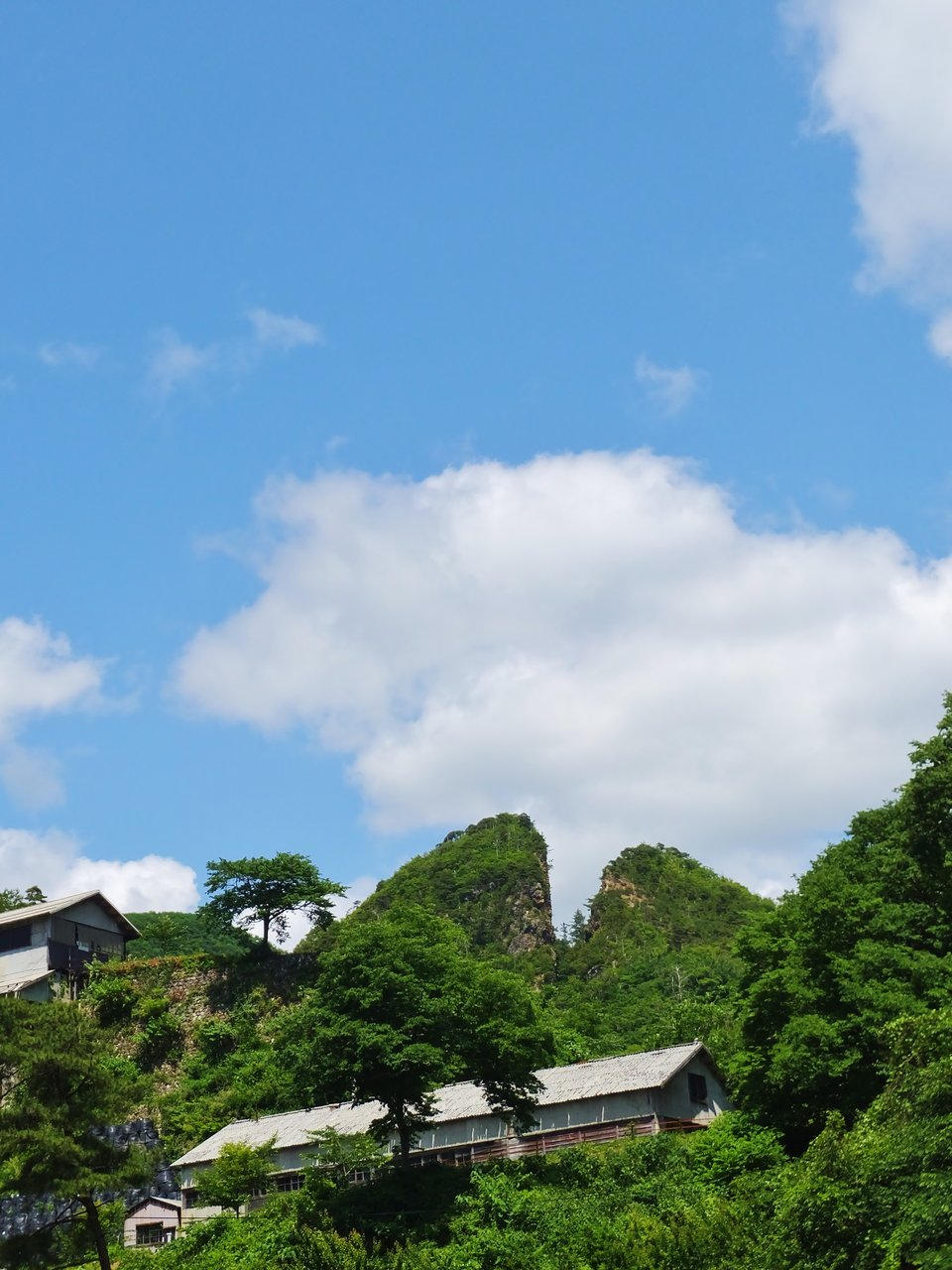 そして石段を登り切るとそこは標高350mの押立山の中腹。突当りに城郭の石垣のような石組みにぶつかる。