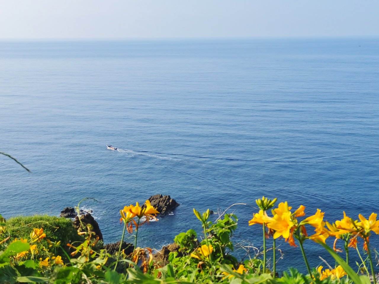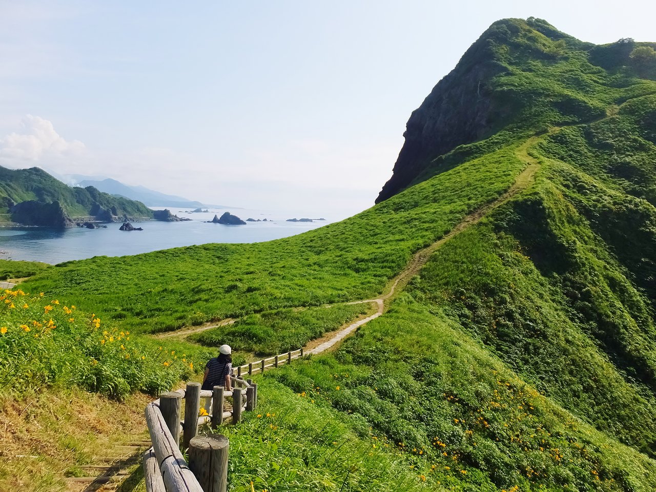 切石を伝って池の反対側の狭い石段を昇ると、そこが天下の絶景を見渡せる自然の展望台となっている。