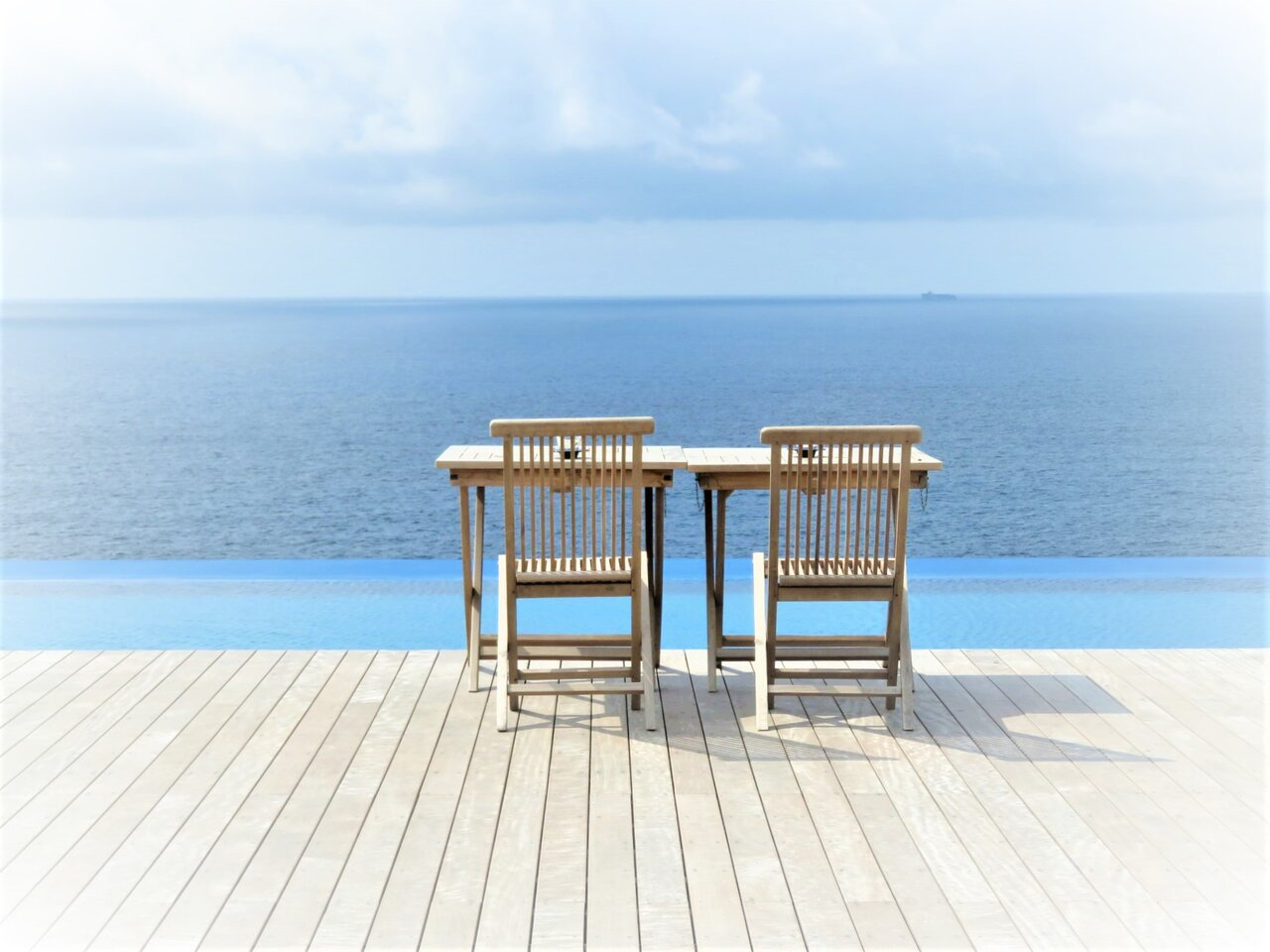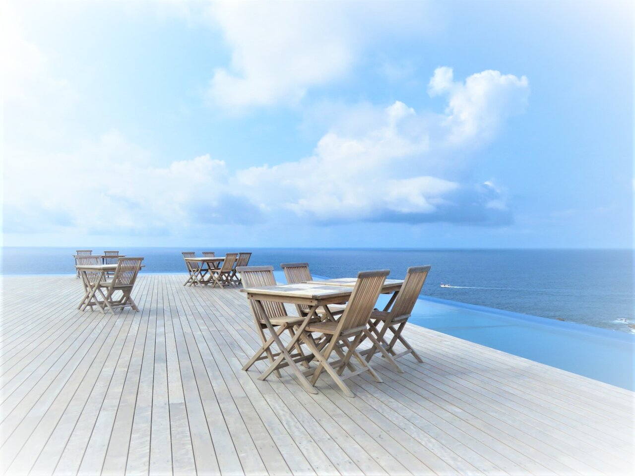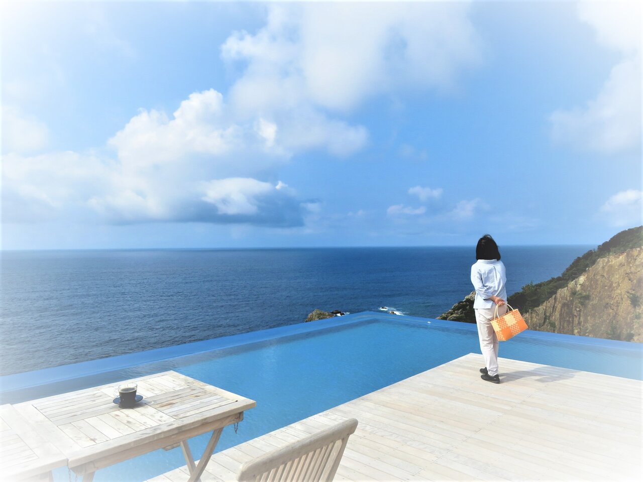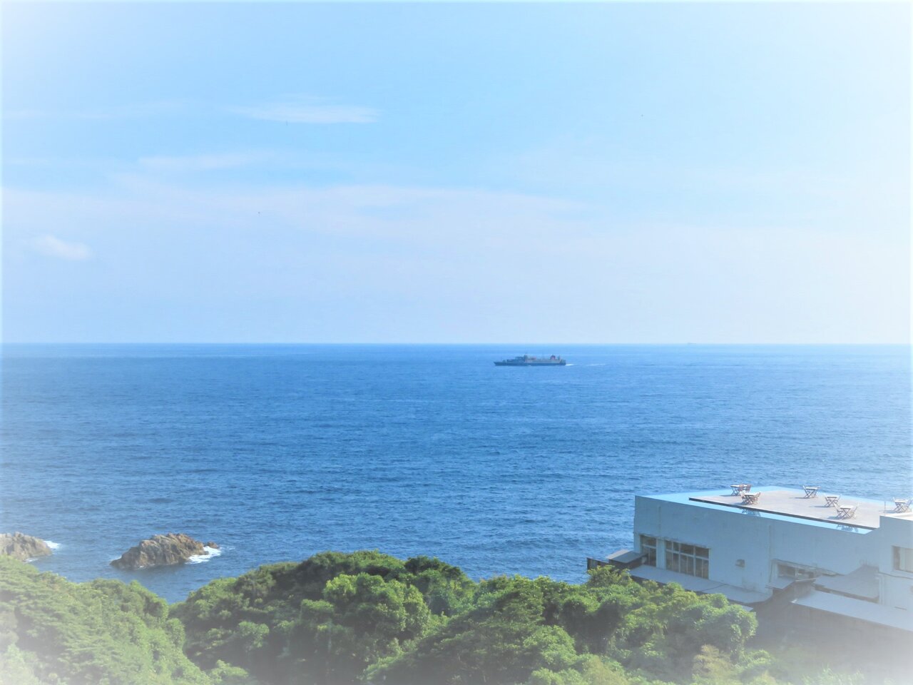 朝食後の珈琲を突端にならぶテーブルで喫んだのだが、目の前にひろがる青海原と白い雲・・・その涯しない風景のなかで自分の姿はあまりに小さかった。