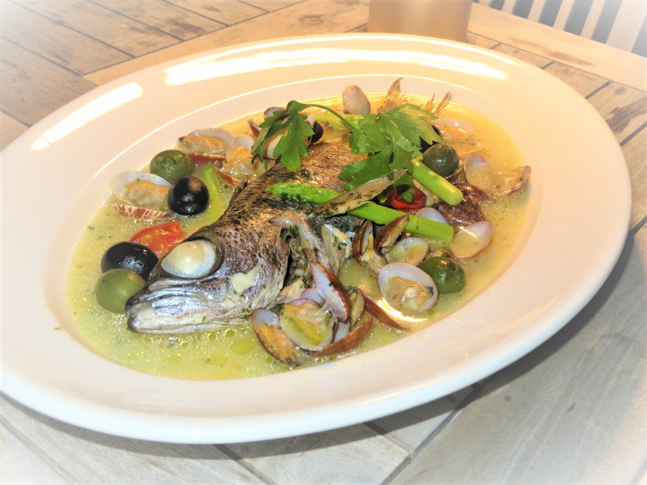 さらに、お薦めが鮮魚丸々一尾のアクアパッツァが豪快である。