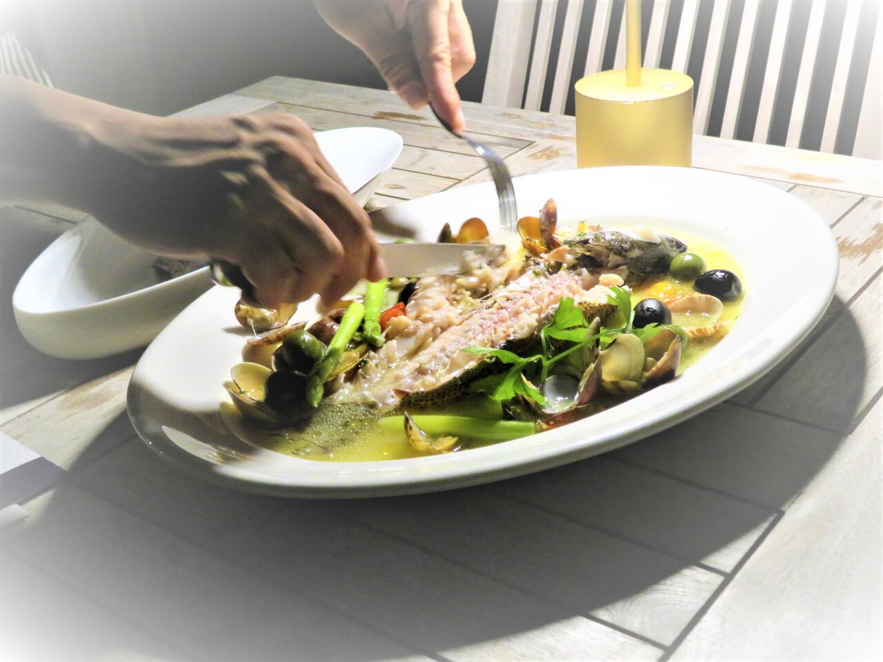 若い男の子が・・・、細君はそれだけで満足の様子・・・手際よく骨と身をとりわけてくれるから、不器用で面倒くさがり屋のわたしも問題なく美しくいただけた。